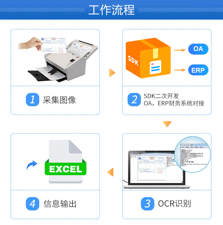 企業提供發票識別、電子發票存檔、發票審核、企業費控、線上報銷等發票全生命周期管理服務,幫助企業規避發票風險、控制銷費。批量掃描儀
